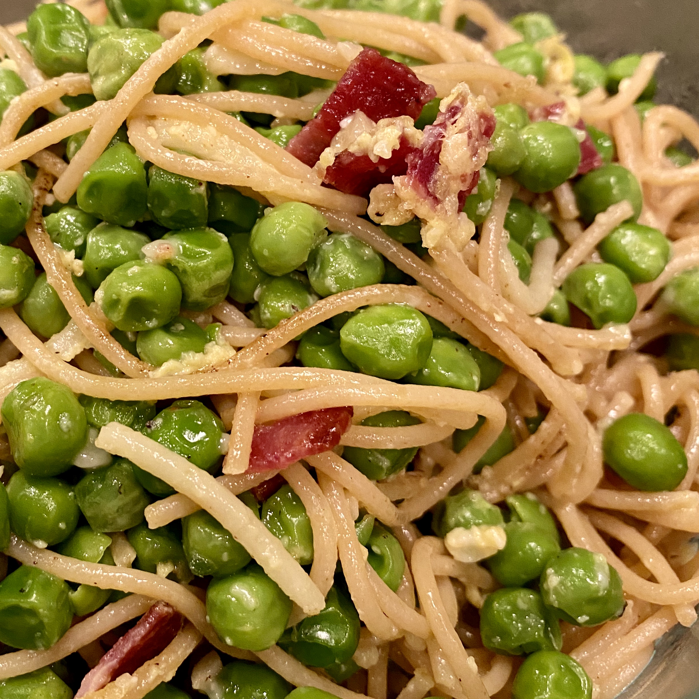 Add the bacon and peas mixture and serve with salt and lots of fresh cracked pepper (as long as you love pepper!).